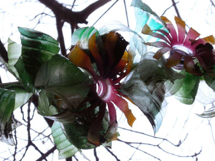 Para ella estas flores que alguien hizo con botellas de plástico: lo bello también nace de lo feo. Y mi namasté, por el regalo de su amistad, por invitarme a ser digna de ella.
