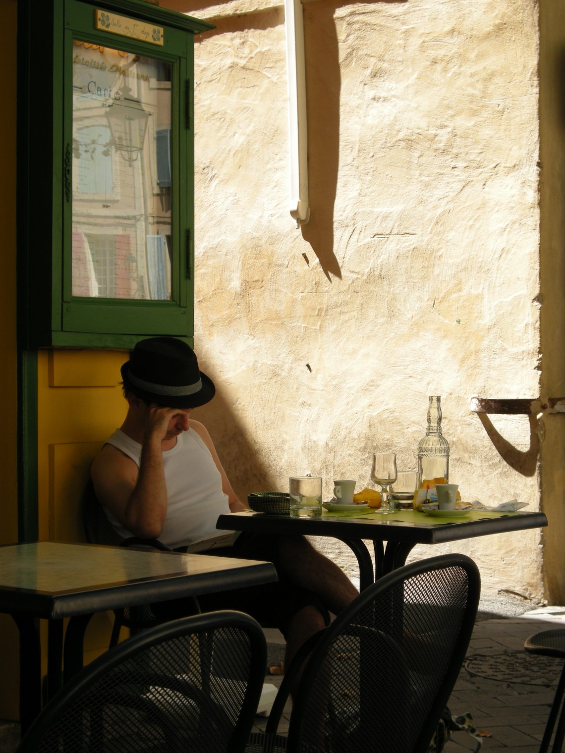 Estoy ahí visitando l’Isle-sur-Sorgue, vengo de admirar el interior de Notre Dame des Anges y en una hora volveré a reunirme con mis amigos en el Café de France. No me importa nada lo bonito que pueda llegar a ser este pueblo con sus canales, sus anticuarios y sus heladerías. Avanzamos muy despacio, juntas hacia esa esquina soleada donde (qué cosas) se alza una iglesia con una inscripción caritativa. Caminamos milímetro a milímetro, en silencio. Ella ha dicho algo en inglés, pero no sé si notando que soy extranjera. Intento una vía de comunicación: Est-ce que vous êtes Française? No. English? Tampoco. Y repite algo varias veces, algo que no logro descifrar. Dice algo así como «Eus trich». Me pregunto si será austriaca. Me mira con ojos muy abiertos, y su lengua se vuelve loca.