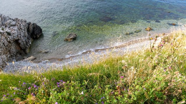 Puedo ensartar felicidades como en un collar: la tramontana chocando contra los árboles (sobre todo, eso, un silencio fuerte, casi una advertencia); la montaña cada día más nítida, más árbol a árbol, más Alain; la playa nublada regalada a los pies, para el asalto de una carrera; nadar hasta temblar -puedo ser valiente, y qué fácil. Dejo que todas estas cosas se adentren mucho en mí, con la esperanza secreta de que se me aparezcan en la muerte.