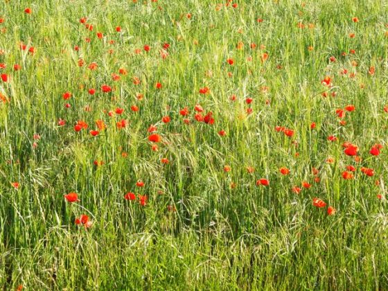 A vueltas con estos encuadres asfixiados con los que recorto el mundo. Sólo espigas. Sólo motas de amapolas, que se me antojan topos … Más